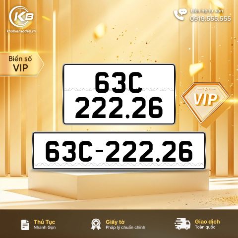 - Sự kết hợp vượng khí: Biển số "63C-222.26" là sự hòa quyện giữa tài lộc của số "6," sự bền bỉ của "tứ quý 2," tài lộc nhân đôi ở cuối và sự cát lành của chữ "C," tạo nên một biển số vừa ấn tượng vừa mang giá trị phong thủy đặc biệt.